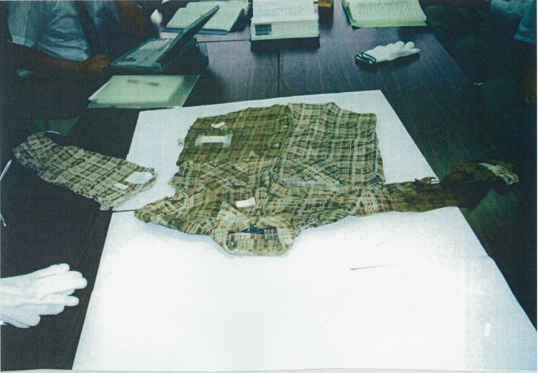 裁判のやり直しのための準備をしていた弁護士は、1997年、まだ開示していない証拠を見せるよう検察官に求めました。そして、弁護士が開示された証拠物を確認したところ、その中に、シャツの布切れが「4枚」ではなく「5枚」あることがわかったのです。しかも、その「5枚」の布切れを並べてみると、なんと、完全な1枚のシャツが復元されたのです。宮田さんが「燃やした」と自白させられていたシャツの左袖部分も、捜査機関はずっと持っていたのです。さらに、「切出小刀に巻き付けて刺した」とされたそのシャツの左袖部分からは、血液が検出されていなかったこともわかりました。シャツの左袖は、犯行に使われてもいなかったし、その後に燃やされてもいなかったのです。
